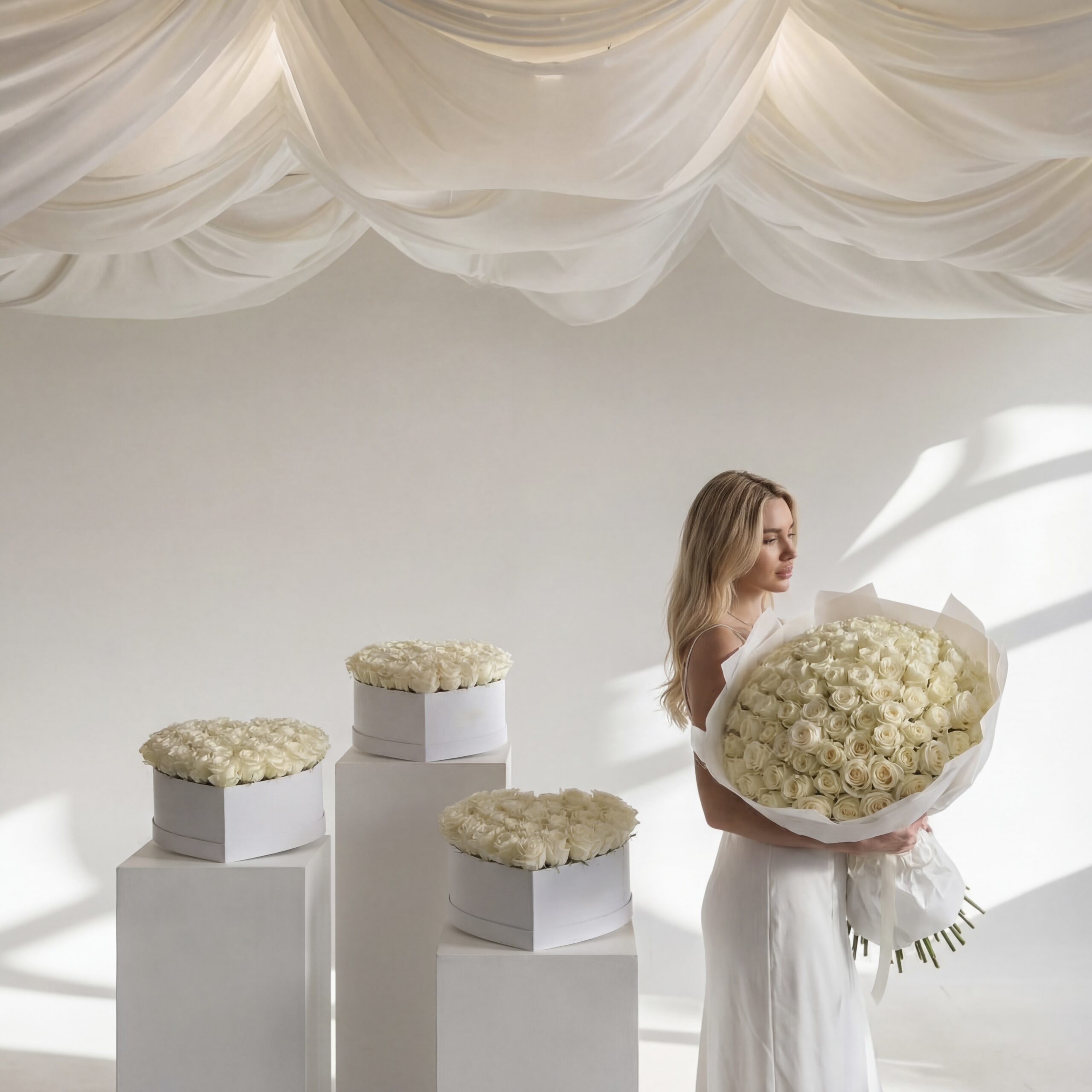 White roses 100 stem bouquet, 3 box with white roses.